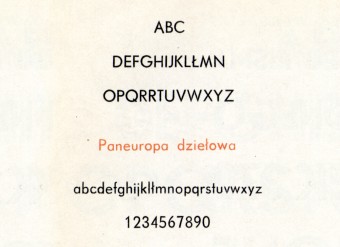 Bezszeryfowa antykwa linearna. Pismo szerokie w oczku. Charakterystyczne dla Paneuropy są ostre zakończenia liter: A, M, N, V, W - oraz cyfra 1. Paneuropa jest przeróbką Futury Paula Rennera, której dokonała odlewnia Jana Idźkowskiego w Warszawie w 1931 roku.